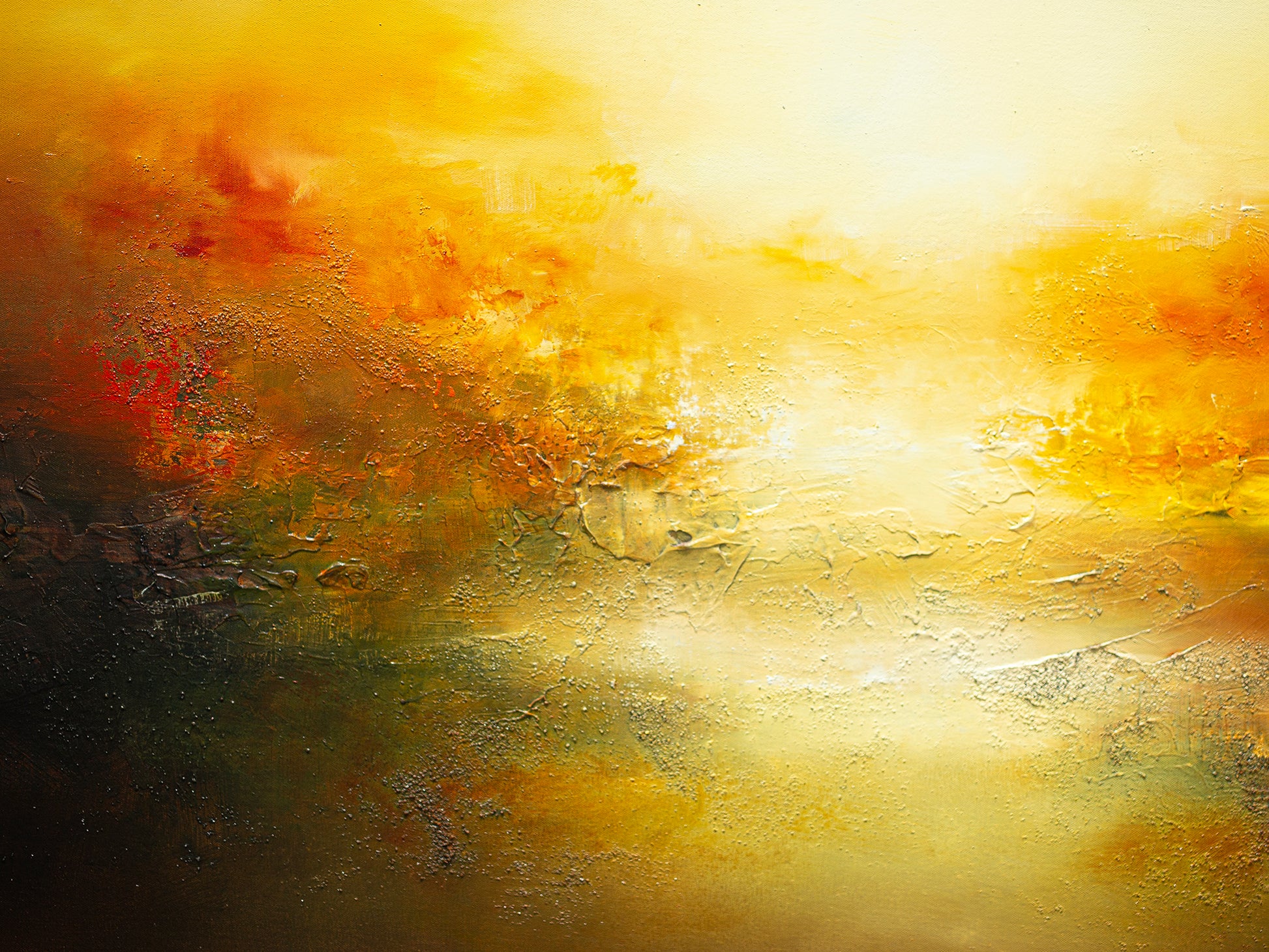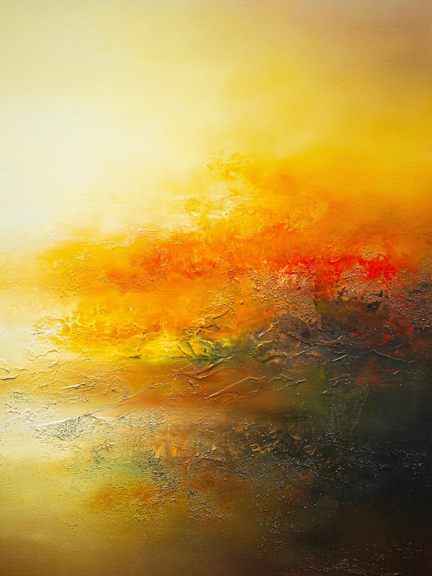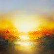 Mostly referencing the semi-abstract landscape paintings by JMW Turner, Ancog builds layers of oil on textured under paintings to achieve the translucent and vibrant colours reminiscent of works of the old maters. However, he illuminate the landscapes with his expert use of tonal values utilising a contemporary palette that brings comforting warmth and elevating luminosity. The compositions are not based on particular place but rather imagined images of tumultuous yet serene vista, allowing us the experience the sublime.